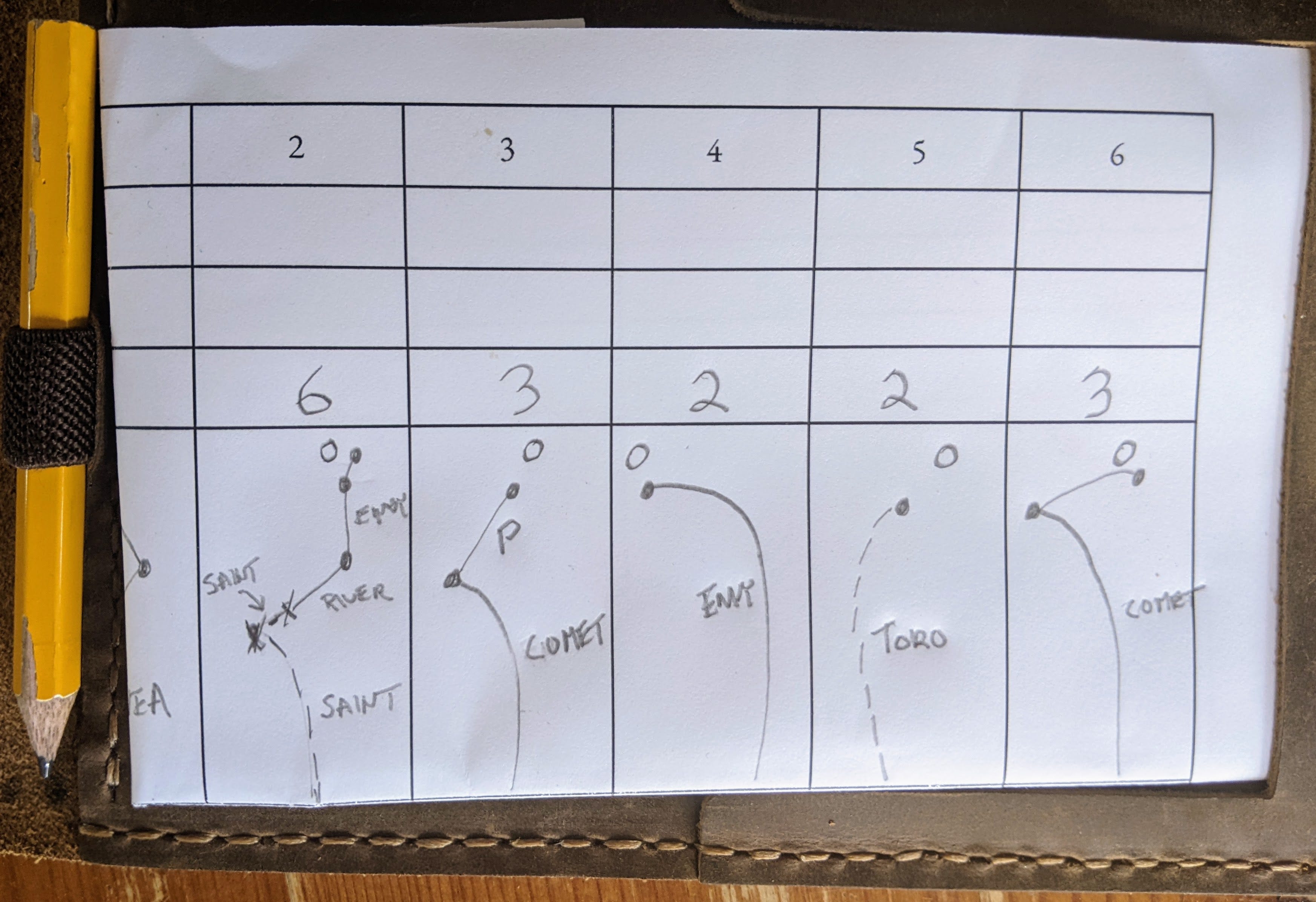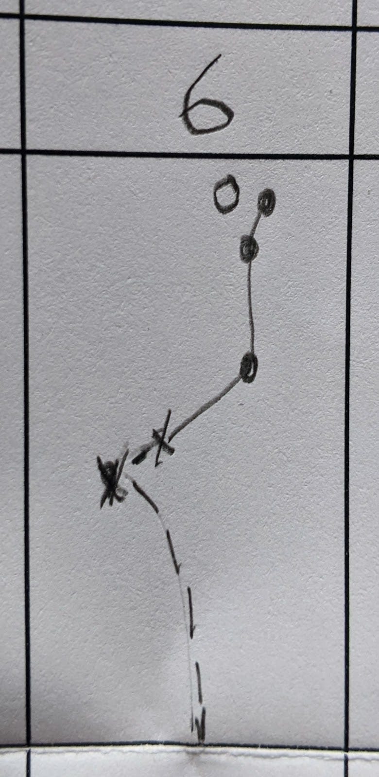 Recently, I’ve taken to recording some practice disc golf rounds with a paper scorecard, enhanced with a row of large cells that lets me also record a small drawing of the shots I took. That way, I can remember what I actually did, not just the score.